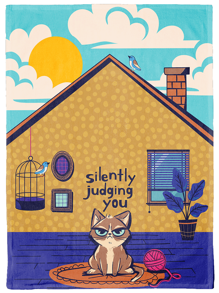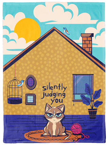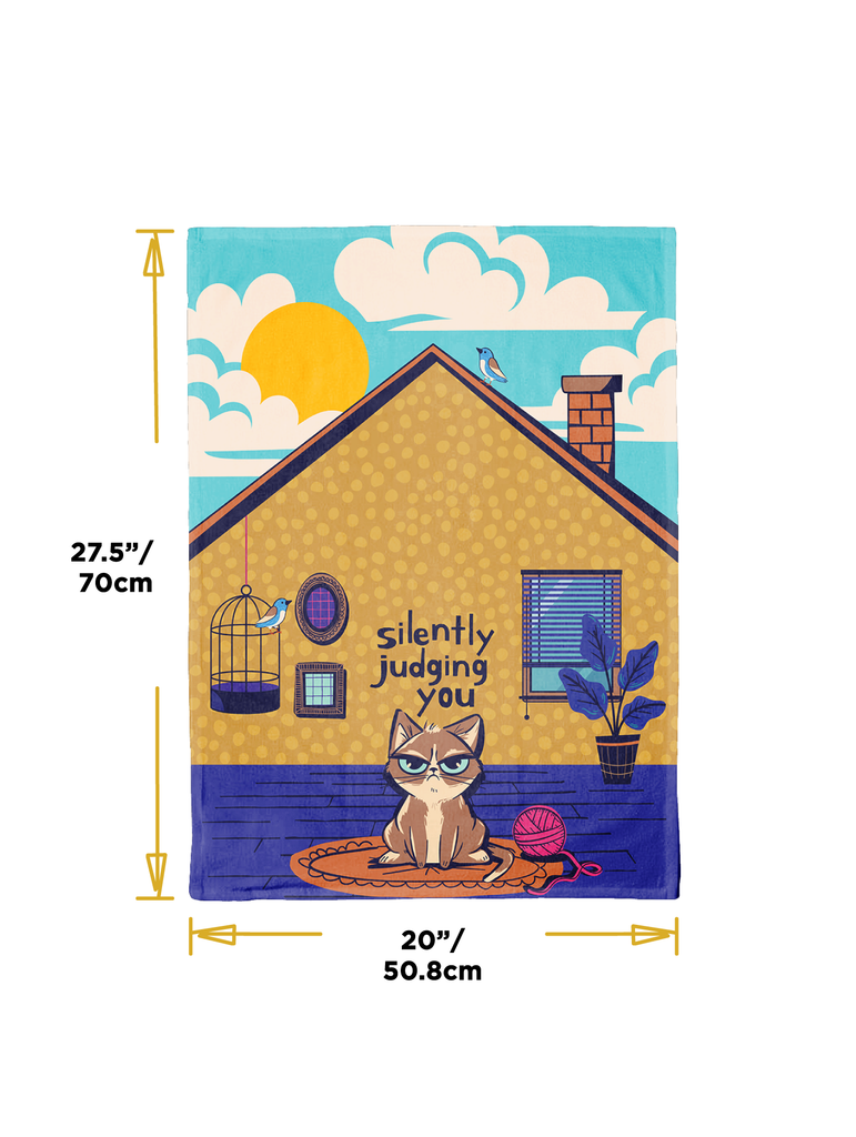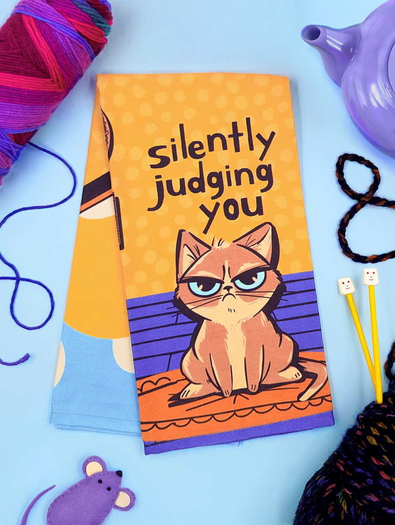 ──────────────── Elevate your kitchen with our new dish towels! Crafted from thick absorbent cotton & expertly designed, these towels are built to sit pretty while handling your toughest kitchen tasks. ──────────────── Size •Dish towel size: 27.5" x 20" / 70cm x 50.8cm ──────────────── Materials & Attributes •100% cotton •Print on Dish Towel: "Silently Judging You" •GSM: 250 •Top-corner ribbon detail for simple hook placement ──────────────── Care •Machine or hand wash in cold water and hang to dry •Do not iron or bleach ──────────────── Shipping and Returns Policy Free shipping on orders over $60.